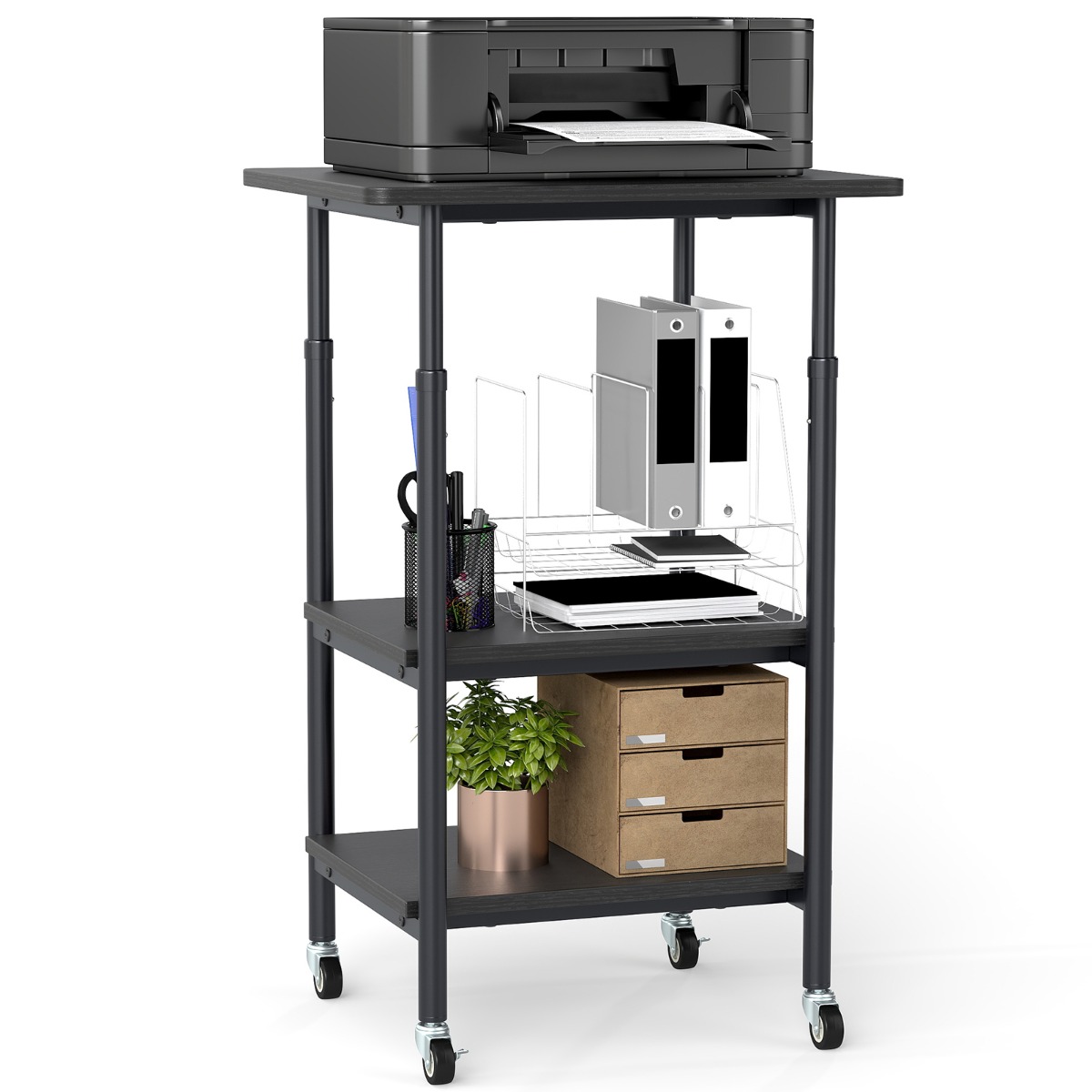 De mobiele printerstandaard beschikt over meerdere planken en maximaliseert de ruimte met een meertrapsorganisatie. Hij biedt perfecte ruimte voor uw documenten, kantoorbenodigdheden, faxapparaten, scanners, enzovoort. Bovendien heeft hij verstelbare hoogtes van 65 cm en 77 cm. De robuuste metalen structuur en hoogwaardige platen garanderen duurzaamheid en stabiliteit bij dagelijks gebruik op kantoor. De printerwagen is uitgerust met 4 universele wielen, waarvan 2 vergrendelbaar zijn. Alle wielen zijn soepel, duurzaam en geluidsarm. De printerstandaard kan gemakkelijk worden verplaatst en veilig worden gepositioneerd waar hij nodig is. De mobiele opbergwagen is geschikt voor langdurig gebruik. Attributen: 【Veelzijdige opbergoplossing】: De 3-laagse printerstandaard biedt perfecte ruimte voor uw kantoorapparatuur zoals 3D-printers, faxapparaten of scanners. Hij houdt uw apparaten binnen handbereik zonder uw ruimte te overbelasten. 【Verstelbaarheid】: Ervaar de flexibiliteit van de mobiele printerwagen, die twee hoogte-instellingen van 65 cm en 77 cm biedt. Pas de hoogte van de standaard aan uw ergonomische behoeften aan om uw productiviteit te verhogen. 【Robuuste constructie】: De mobiele opbergwagen heeft een robuuste metalen structuur, aangevuld met hoogsterkte platen. Hij is ontworpen voor duurzaamheid en weerstaat de eisen van dagelijks gebruik op kantoor, om de stabiliteit van uw waardevolle apparaten te waarborgen. 【Eenvoudige mobiliteit】: Uitgerust met 4 universele wielen beweegt de machine standaard moeiteloos door verschillende kantoorindelingen. 2 vergrendelbare wielen verhogen de stabiliteit en maken het eenvoudig om de standaard te positioneren en veilig vast te zetten. 【Veelzijdige toepassingen】: De in hoogte verstelbare printerstandaard is ideaal voor thuiskantoren, kleine zakelijke evenementen of elke ruimte waar ruimte schaars is. Deze standaard bespaart ruimte en ondersteunt een verscheidenheid aan materialen en bevordert een georganiseerde werkplek. Kenmerken: Biedt 2 hoogte-opties om uit te kiezen 3-laags opbergontwerp voor uw printer, scanner, faxapparaat en meer Beschikt over een robuuste, stabiele en duurzame metalen structuur Bestaat uit hoogwaardige platen die stabiel, duurzaam en gemakkelijk schoon te maken zijn Uitgerust met 4 universele wielen, waaronder 2 vergrendelbare Met verstelbare pennen kunt u eenvoudig de juiste hoogte instellen Let op: de printerstandaard moet worden gemonteerd