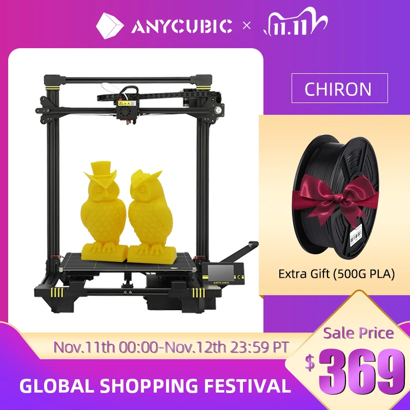 ANYCUBIC Chiron 3D Printer Large Size 400x400x450mm³ Extruder Dual Z Axis FDM 3D Printers PLA Filaments 3D Printing