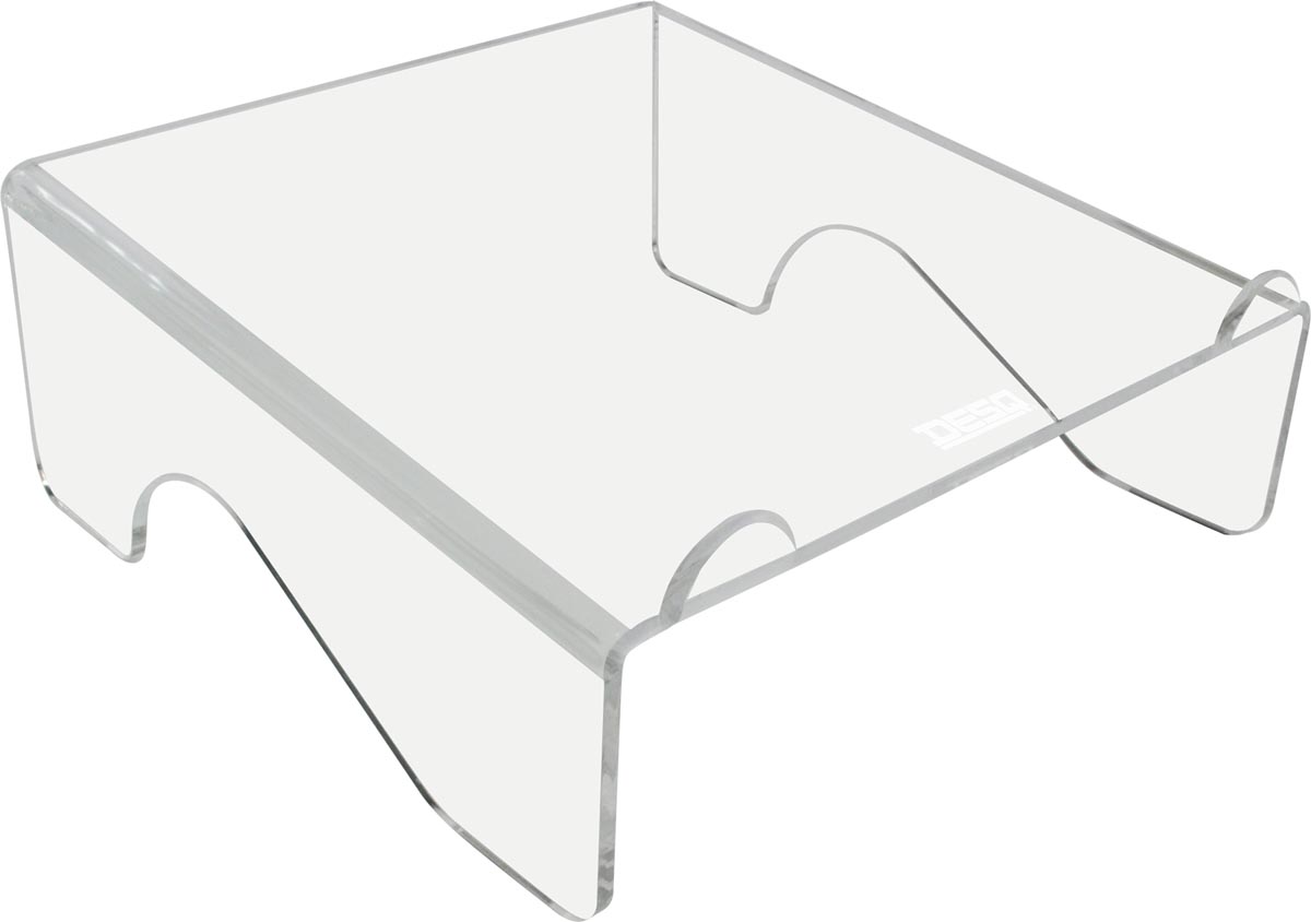 Laptopstandaard van hoogwaardig, helder en stijlvol 6 mm acryl. Draagkracht tot 15 kg Hoogte is instelbaar tot 12 cm Geschikt voor laptops tot en met 17 inch Ft 30 x 30 x 9-12 cm