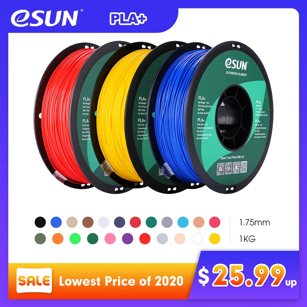 eSUN 3D Printer Filament PLA+ 1.75mm Dimensional Accuracy +/- 0.03mm 1KG (2.2 LBS) Spool 3D Printing Material For 3D Printers