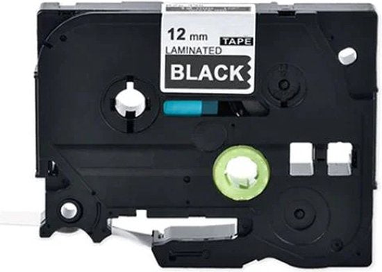 • 1 rol huismerk label tape – Wit op zwart, 12 mm x 8 m