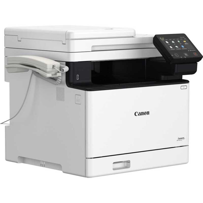 De i-SENSYS MF754cdw brengt snelheid en flexibiliteit naar het kantoor – ook in kleur als je dat wilt. Deze multifunctionele kleurenlaserprinter met krachtige afdrukeenheid produceert tot 33 pagina’s per minuut en heeft naast de afdrukeenheid ook een scanner met flatbed en duplex-invoer, een kopieerfunctie en een faxinterface. De MF754cdw kan snel en eenvoudig in bestaande werkprocessen worden geïntegreerd via een LAN- of WLAN-interface. Hij wordt bediend via een kleurentouchscreen: Dit display met een diagonaal van 12,7 cm (5″) bevindt zich aan de voorzijde.