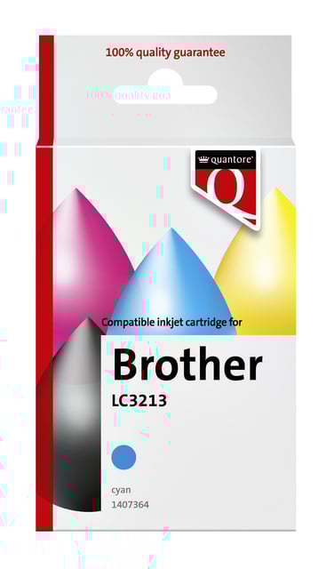 * Dit alternatief van Quantore tbv 227XL zorgt voor de meest voordelige en milieuvriendelijk gebruik van je Brother printer. * De documenten die je met de blauw LC3213C print hebben een vergelijkbare kwaliteit als het origineel. * Met deze cartridge print je tot 500 paginas. * Wil je meer en goedkoper printen? Kijk dan in ons uitgebreide alternatieven aanbod, zoek op type of model van de cartridge of informeer bij onze verkoopafdeling. * Weten of je de juiste cartridge hebt? Kijk dan bij de specificaties geschikt voor of jouw Brother printer ertussen staat.* Aantal afdrukken: 500* Inhoud (Netto): 8