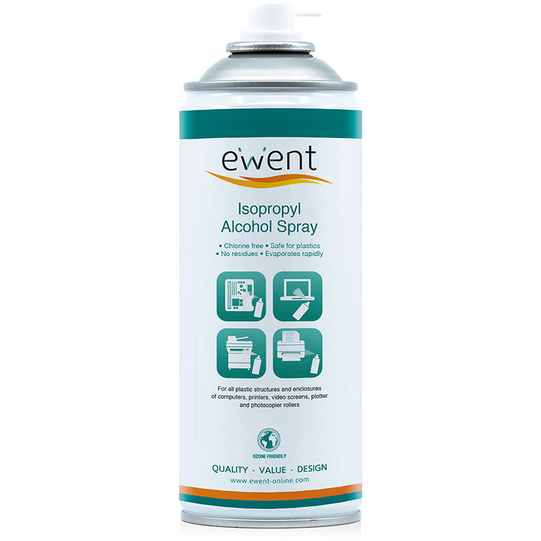 Ewent EW5611 Isopropyl Alcohol spray is ideaal voor het schoonmaken van printplaten en plastic onderdelen van computers en printers. De spray is chloorvrij, laat geen resten achter en verdampt snel. Daarnaast is de Isopropyl Alcohol spray 100% ozonvriendelijk