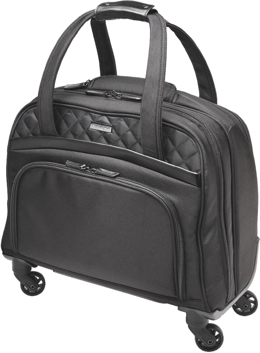 Uit 1680D polyester Beschermvak voor een tablet van 9,7 inch Opbergvak voor laptop van 15,6 inch Voorvak met opbergruimte voor kabels, harde schijven, pennen en andere accessoires Met telescopische handgreep 360 draaibare wieltjes Ft 44,5 x 20 x 43cm Kleur: zwart