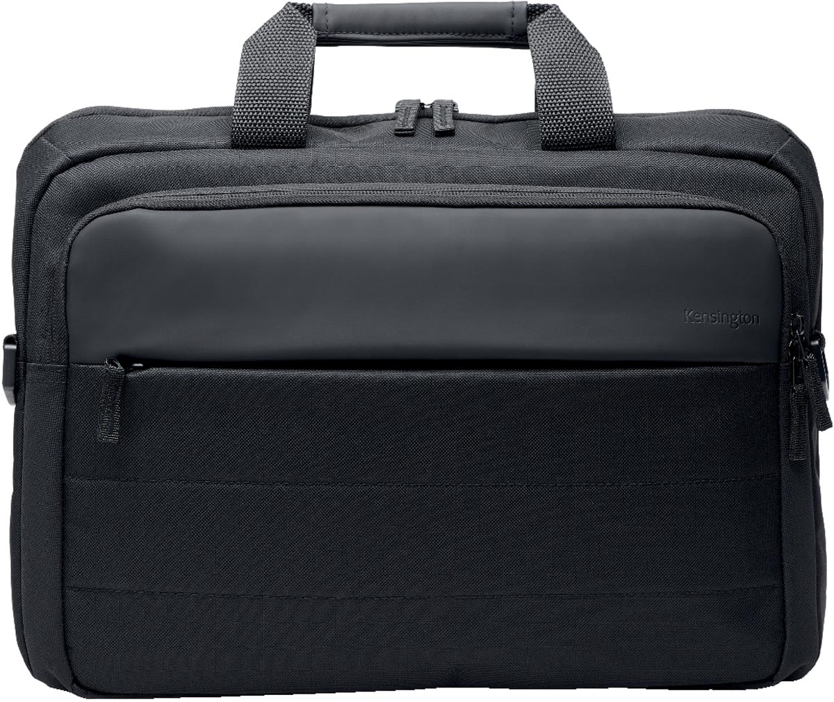 Uit 52 % post-consumer gerecyleerd materiaal Voor laptops tot 16 inch Gevoerd laptopcompartiment Afneembare schouderriem Ft 29,1 x 7 x 40,6 cm Kleur: zwart