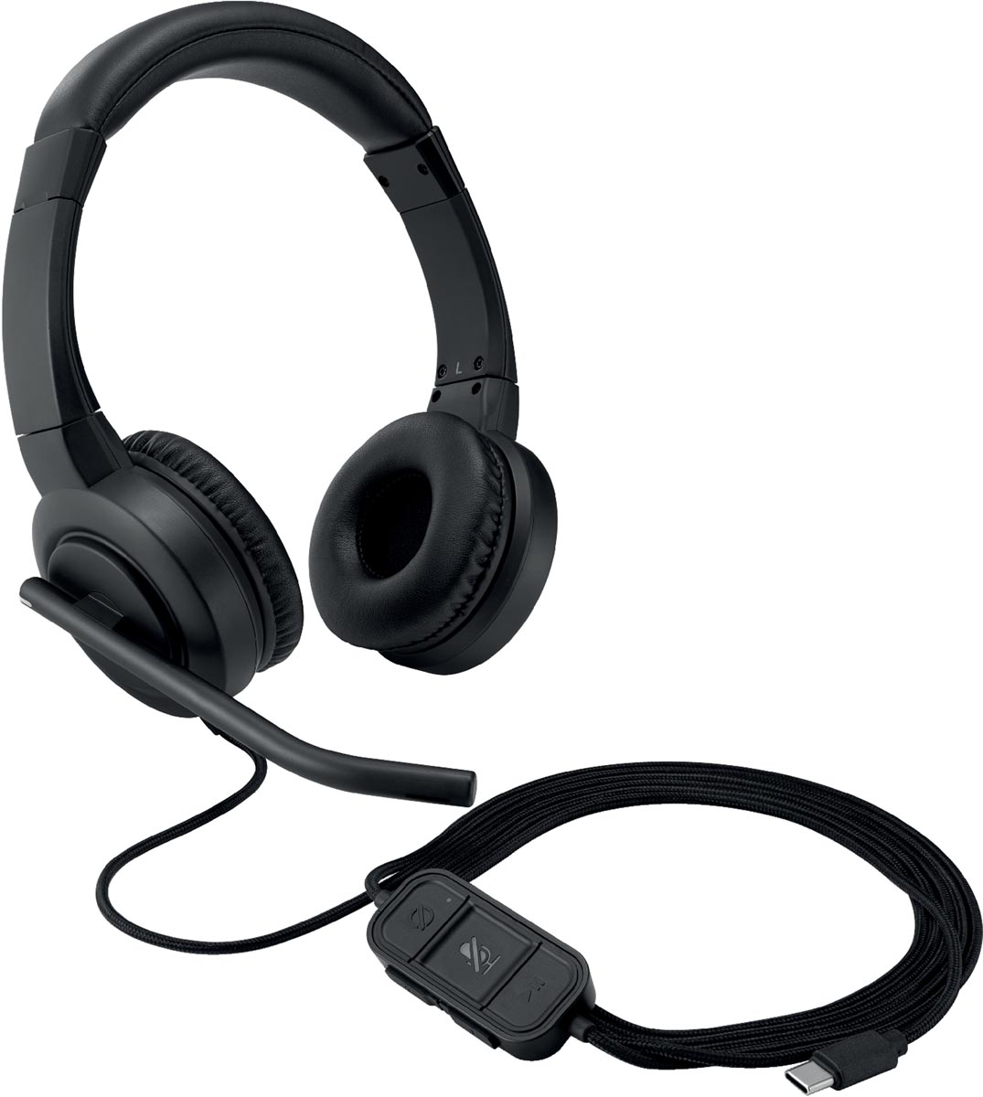Met USB-C verbinding Aanpasbare hoofdband en zachte oorkussens Bediening met volumeregeling en schakelaar op de kabel Lengte kabel: 1,8 m On-ear model Kleur: zwart