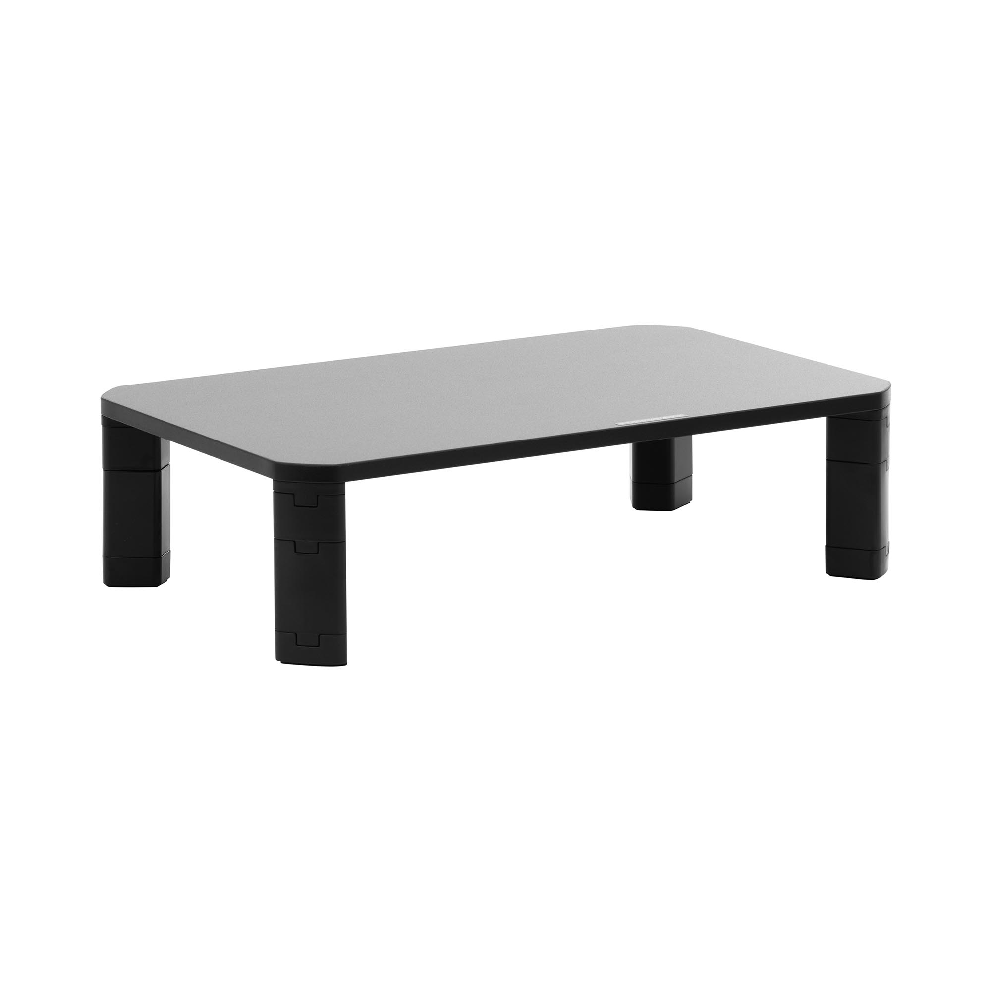 Met het in hoogte verstelbare bureauopzetstuk van Fromm & Starck upgrade je je kantoorinrichting, verbeter je je kijkpositie en creëer je orde op je bureau. Het subtiele ontwerp integreert in elke inrichtingsstijl – of het nu op kantoor of in het thuiskantoor is. Kies voor de hoogwaardige en ergonomisch ontworpen werkplekinrichting van Fromm & Starck! Met de schermverhoger haal je een functioneel product in huis dat je een comfortabele werkhouding geeft. Dankzij een instelbare hoogte van 40/70/100/130 mm plaats je de monitor of laptop op ooghoogte: ontlast voor nek en rug. Werken op de computer is blijvend prettiger en je blijft lang gefocust. Dankzij een draagvermogen tot 20 kg is het veelzijdige bureauhulpstuk geschikt voor monitoren, laptops, notebooks of printers. Daarnaast biedt het gebied onder de monitorstandaard opbergruimte voor een toetsenbord, documenten of boeken. Met deze schermhoogte is je werkplek niet alleen ergonomischer, maar ook meer gestructureerd. De antislipvoetjes zorgen te allen tijde voor een veilige stand en beschermen het oppervlak van het bureau. Maak uw werk op de pc in de toekomst comfortabeler, upgrade uw werkplek met het elegante ontwerp van de monitorverhoger en kies voor industriële benodigdheden van de hoogste kwaliteit van Fromm & Starck!