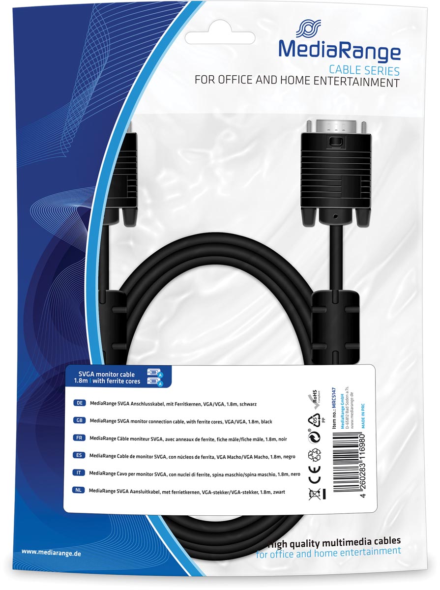 SVGA-monitorkabel SVGA Mannelijk / SVGA Mannelijk Met ferrietringen Textielmantel Kleur: zwart kabellengte: 1,8 m