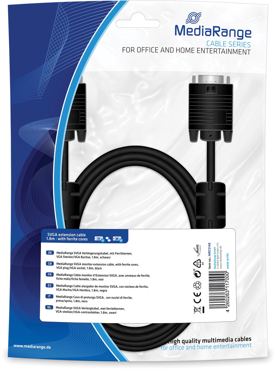 SVGA-verlengkabel voor monitor SVGA vrouwelijk / SVGA mannelijk Met ferrietringen tegen storingen Textielmantel Kleur: zwart
