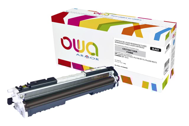 * Dit voordelige alternatief van OWA tbv CE310A zorgt voor een duurzaam gebruik van je HP printer. * De documenten die je met de zwart CE310A print hebben een vergelijkbare kwaliteit als het origineel. * Met deze cartridge print je tot 1200 paginas. * Wil je nog meer printen? Kijk dan in ons uitgebreide alternatieven aanbod, zoek op type of model van de cartridge of informeer bij onze verkoopafdeling. * Weten of je de juiste cartridge hebt? Kijk dan bij de specificaties geschikt voor of jouw HP printer ertussen staat.* Aantal afdrukken: 1200