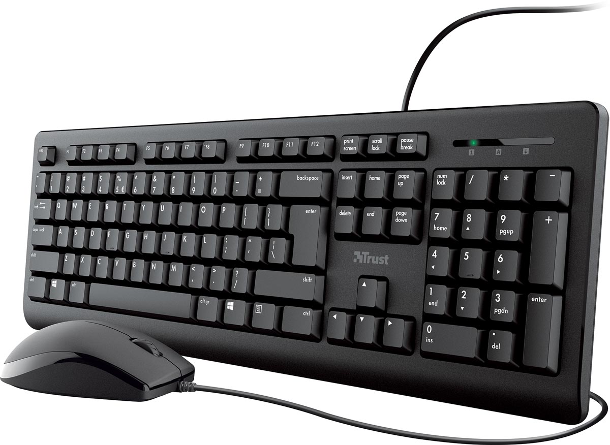 Full-size toetsenbord met standaardindeling om comfortabel te typen Morsbestendig toetsenbord Muis voor rechts- en linkshandigen Kabel van 1,8 m Plug Play